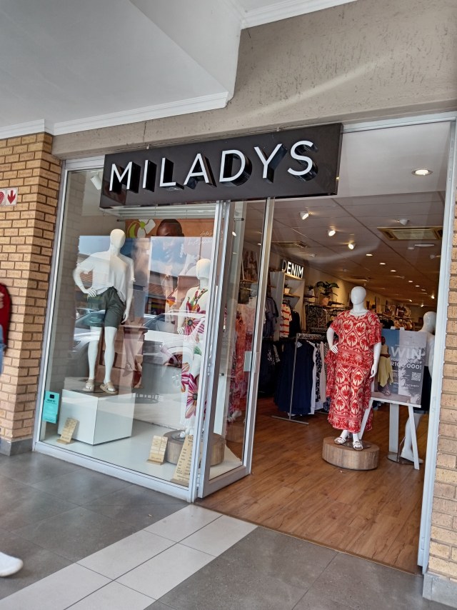 Miladys Miladys TRADING HOURSMonday – Friday 9:00-19:00Saturday 9:00-17:00Sunday 10:00-16:00Holidays – 10:00 to 16:00Address : Riverside Boulevard Shopping Centre, Corner Frikke Meyer, Chopin St, Vanderbijlpark, 1911Contact detailsPhone : 087-750-8841